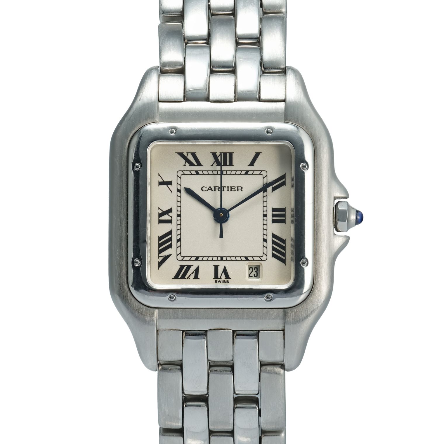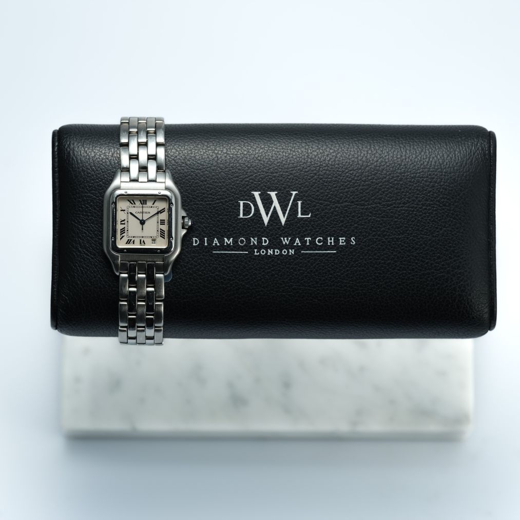 Powered by a reliable quartz movement, this Panthère offers precise timekeeping with minimal maintenance, making it ideal for day-to-day wear or special occasions. The scratch-resistant sapphire crystal and solid steel construction ensure durability, while the elegant proportions and iconic styling make it a versatile luxury accessory. Combining Cartier’s heritage design language with practical wearability, this Panthère remains a timeless choice for those seeking understated sophistication.