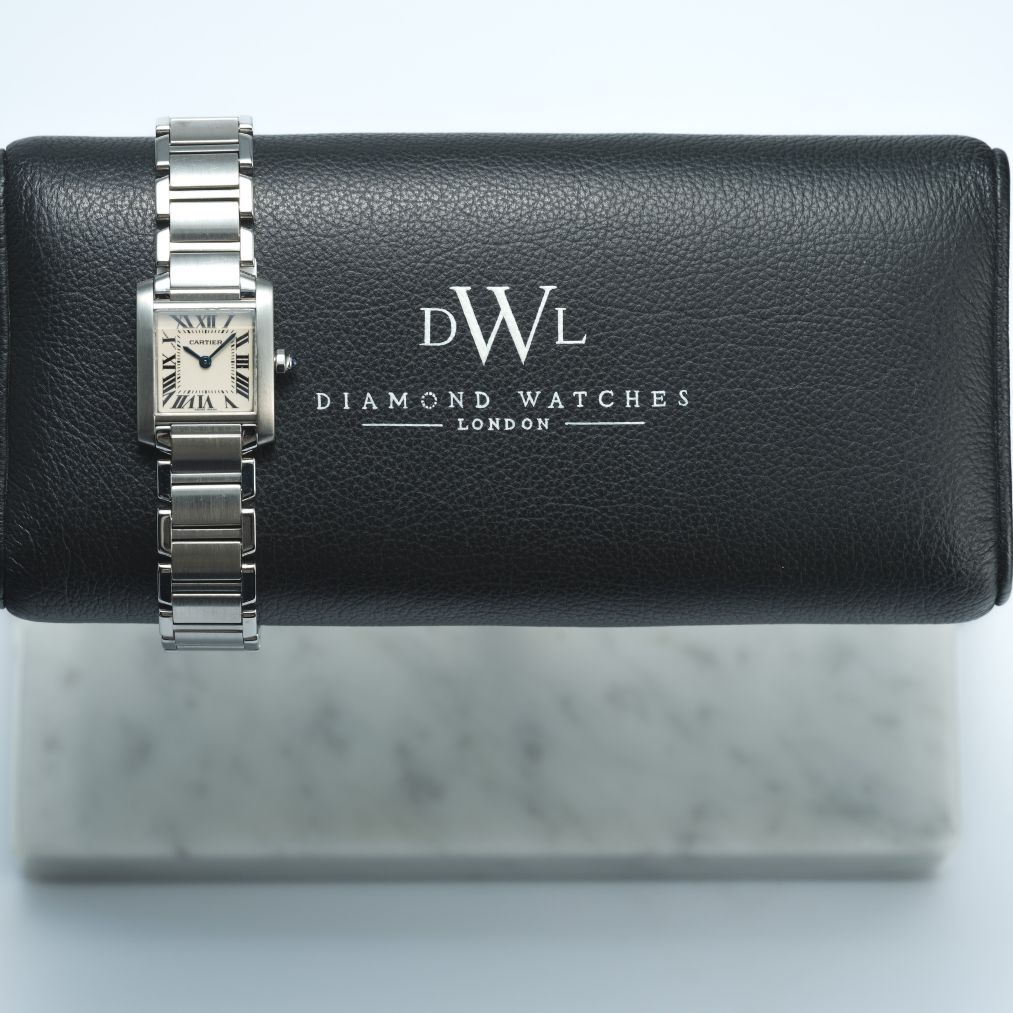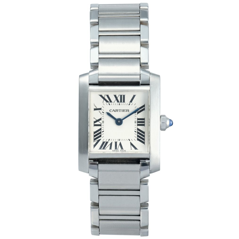 Powered by a precise quartz movement, this Tank Française delivers reliable and low-maintenance timekeeping, ideal for those who value practicality without compromising style. The polished stainless-steel case and bracelet ensure durability and comfort, while the sapphire crystal protects the dial from everyday wear. Combining Cartier’s heritage design cues with versatile functionality, this Tank Française is a distinguished luxury timepiece with enduring appeal.