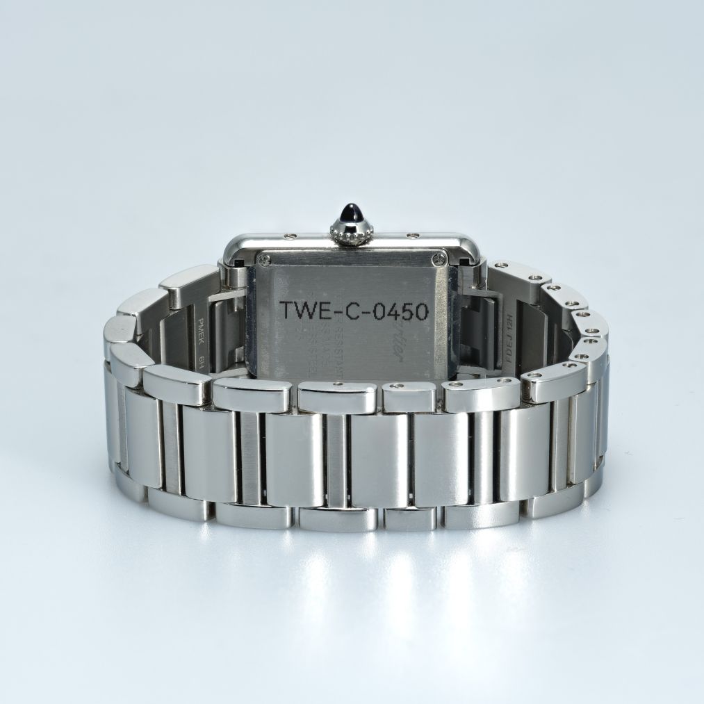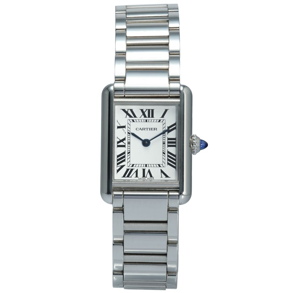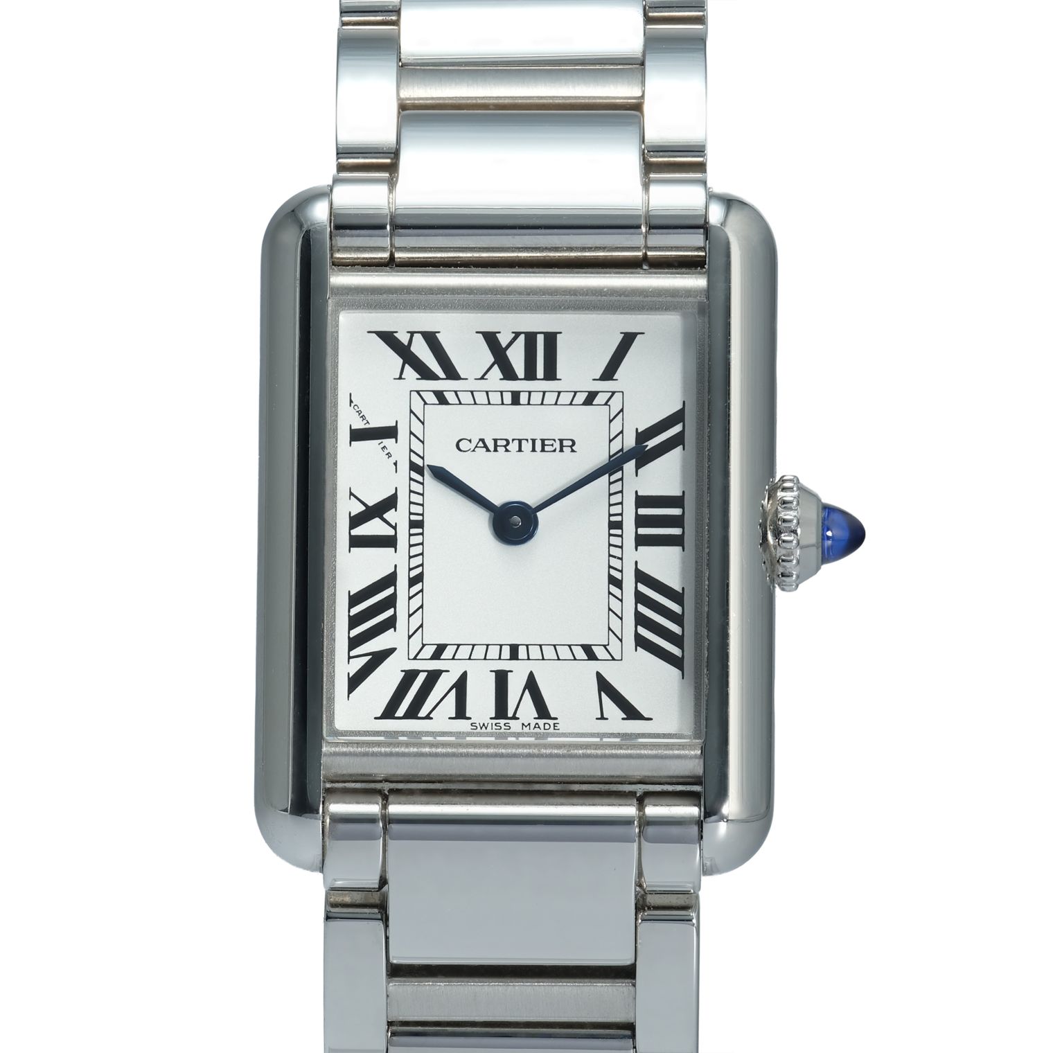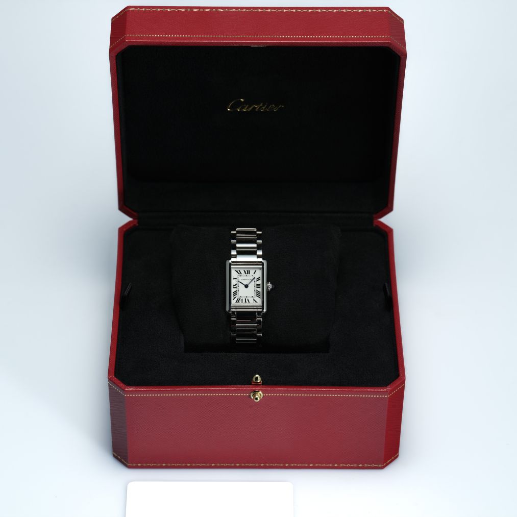 The Cartier Tank Must is a refined reinterpretation of the classic Tank design, and this example stays true to the collection’s identity with its sleek rectangular stainless-steel case, clean lines, and understated elegance. The watch’s minimalist dial — with its classic black Roman numerals, rail-track minute markers and blued-steel sword hands — captures the essence of Art Deco-inspired watchmaking that the Tank line has championed since its inception in 1917.
