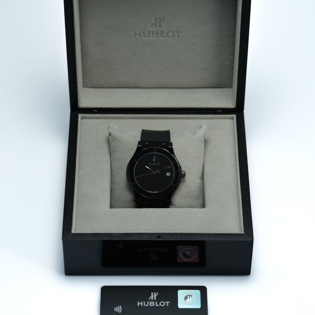 Celebrate four decades of Hublot’s visionary design with this Classic Fusion 40th Anniversary edition, a tribute to the original 1980 Classic that helped define the brand’s “Art of Fusion” philosophy. The polished ceramic case offers a striking blend of strength and lightness, while the deep black dial delivers an elegant contrast that’s instantly eye-catching. Clean, minimalist lines and subtle Hublot branding keep the aesthetic refined yet contemporary, making this timepiece as suitable for everyday wear as it is for special occasions.