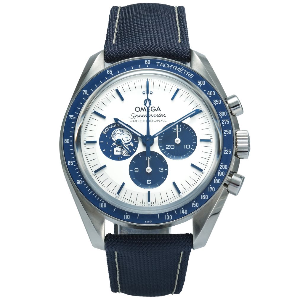 The OMEGA Speedmaster Professional Moonwatch reimagines one of horology’s most storied icons with a contemporary twist. Encased in robust stainless steel, this manual-winding chronograph pairs a crisp white dial with a striking blue bezel that offers a refreshing contrast and effortless legibility. The sporty textile strap enhances its dynamic character, making it an ideal companion for both everyday wear and more adventurous pursuits. Inspired by the legendary Moonwatch heritage that has accompanied explorers beyond Earth’s atmosphere, this model brings timeless style and performance together in a distinctive new aesthetic.