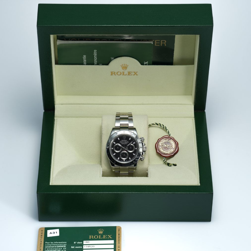 Inside beats Rolex’s in-house automatic chronograph movement (calibre 4130), known for its reliability, precision and roughly 72-hour power reserve. The robust Oyster case and bracelet, coupled with a scratch-resistant sapphire crystal and 100 m water resistance, make this Daytona equally at home on the wrist during daily life as on the racetrack or in formal settings. For anyone seeking a blend of performance, heritage and understated style, this black-dial Daytona remains one of the most revered and versatile chronographs available.