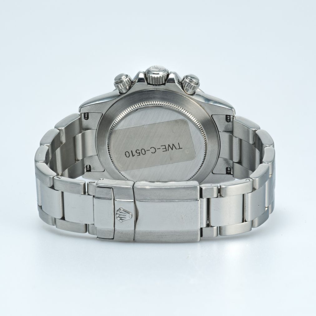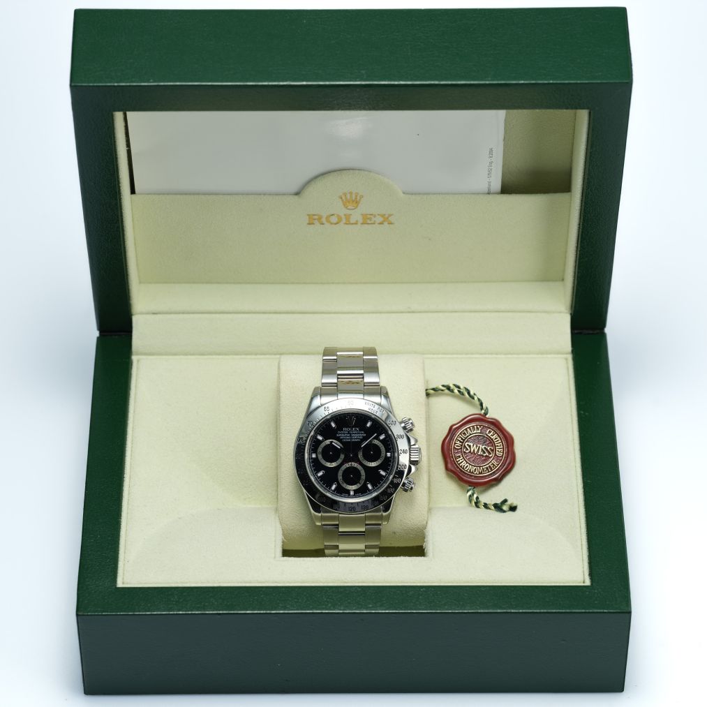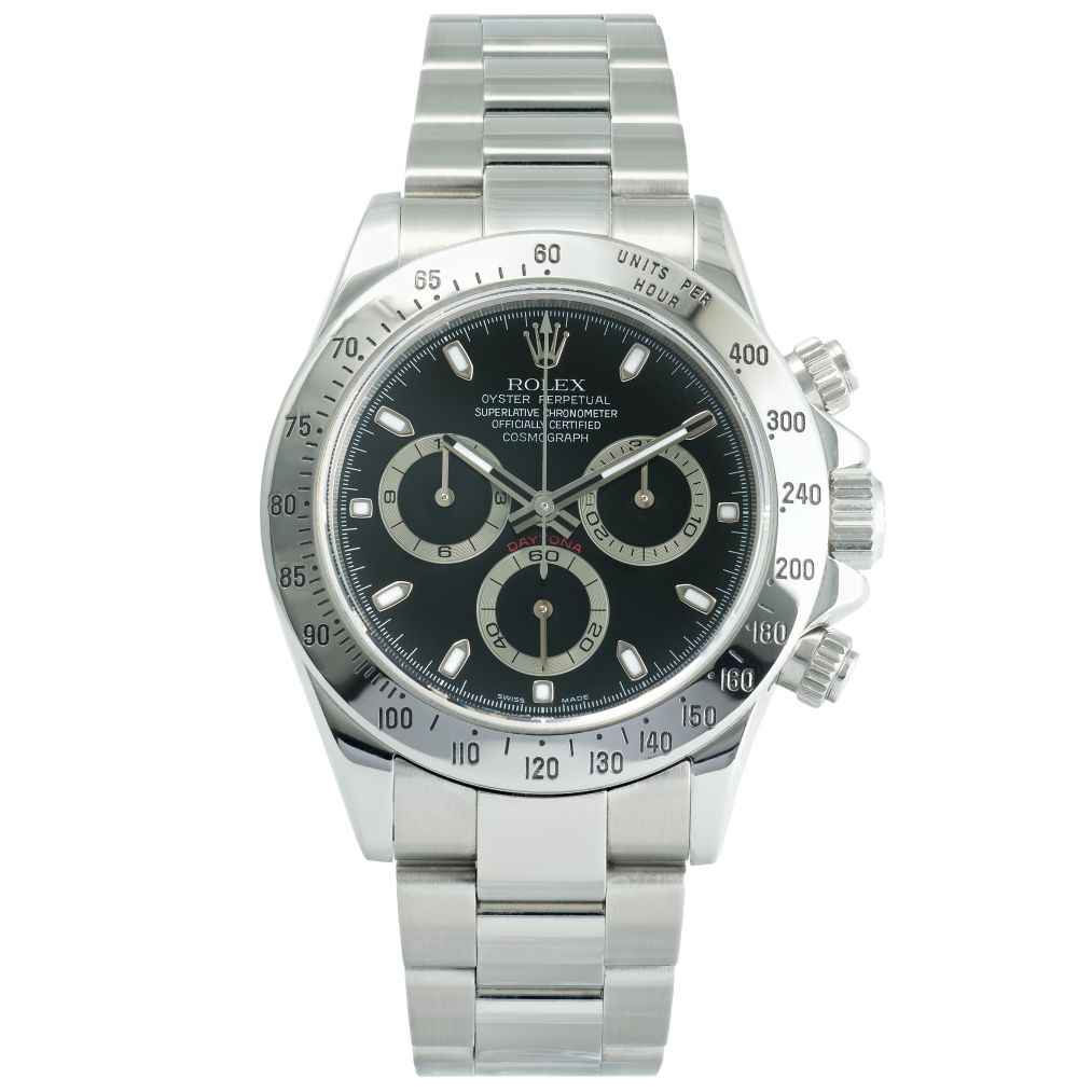 Powered by Rolex’s in-house automatic chronograph movement and protected by a scratch-resistant sapphire crystal, this Daytona offers exceptional precision, reliability, and performance — qualities that have made it one of the most coveted chronographs in the world. The durable Oystersteel construction and comfortable Oyster bracelet provide both resilience and refined everyday wearability. Whether worn for active pursuits or as a statement piece with formal attire, this stainless steel Daytona with a black dial is a standout luxury sports watch with enduring appeal.