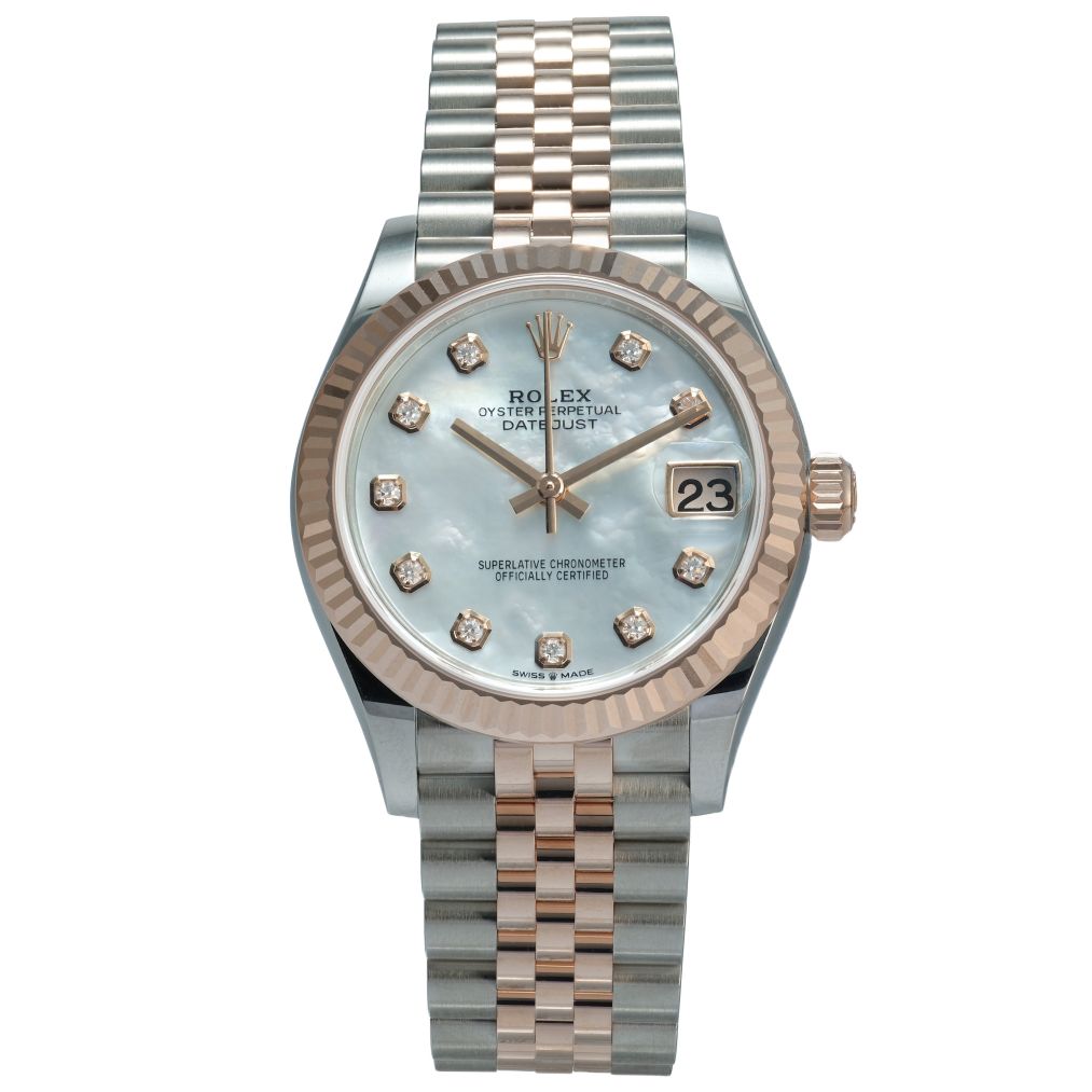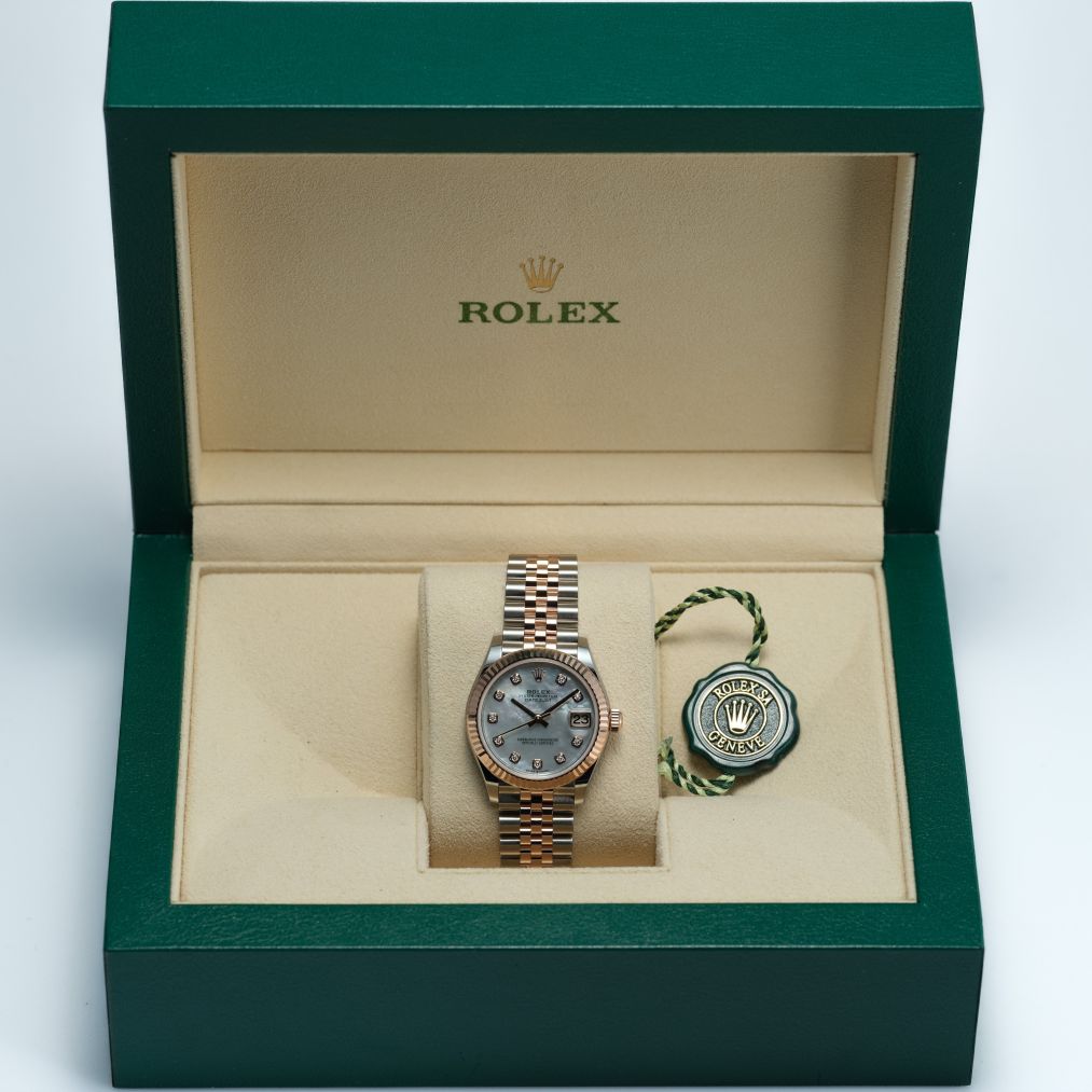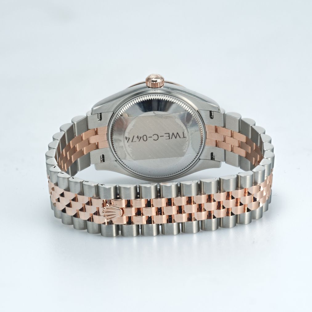 Inside, the watch is powered by Rolex’s automatic movement, delivering dependable performance and precision timekeeping. The combination of oyster-case durability, scratch-resistant sapphire crystal, and the refined two-tone finish ensures long-lasting quality and understated sophistication. For anyone seeking a Datejust that blends classic elegance with a subtle feminine touch, this Datejust 31 with a mother-of-pearl dial and Everose detailing is a compelling and versatile choice.