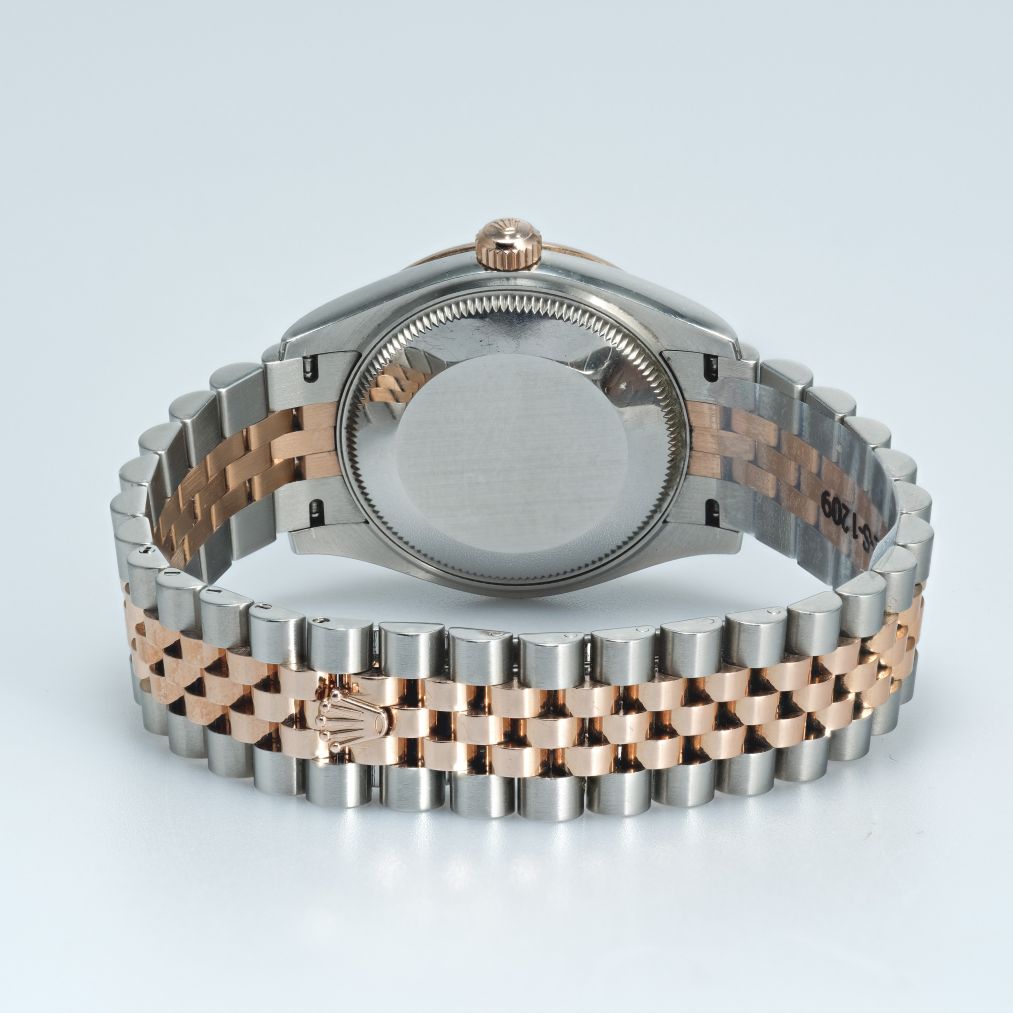 Powered by Rolex’s automatic movement, this Datejust delivers reliable precision and smooth performance. The scratch-resistant sapphire crystal, solid Oyster bracelet, and robust construction provide durability alongside comfort and refinement. With its harmonious mix of materials, elegant dial details, and iconic Rolex craftsmanship, this Datejust 31 is a beautifully balanced luxury timepiece with enduring style.