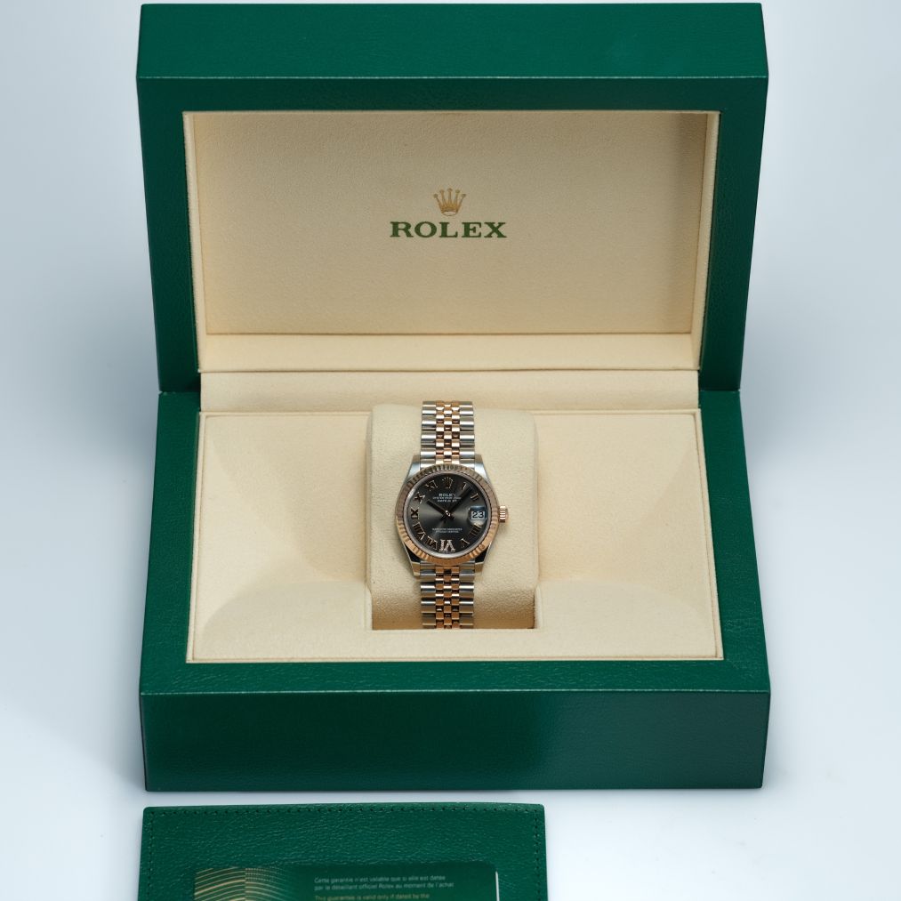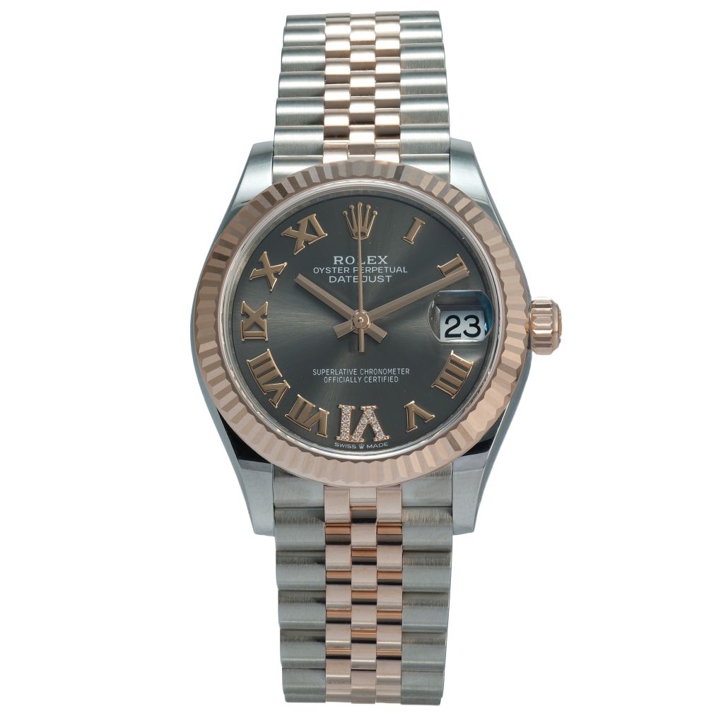 This Rolex Datejust 31 blends refined elegance with subtle luxury, crafted in a combination of stainless steel and Everose gold. The 31 mm Oyster case offers a graceful and balanced presence on the wrist, complemented by a sophisticated grey dial that adds depth and versatility. A diamond-set hour marker at 6 o’clock introduces a touch of understated glamour, while the classic Datejust design ensures timeless appeal suitable for both everyday wear and special occasions.