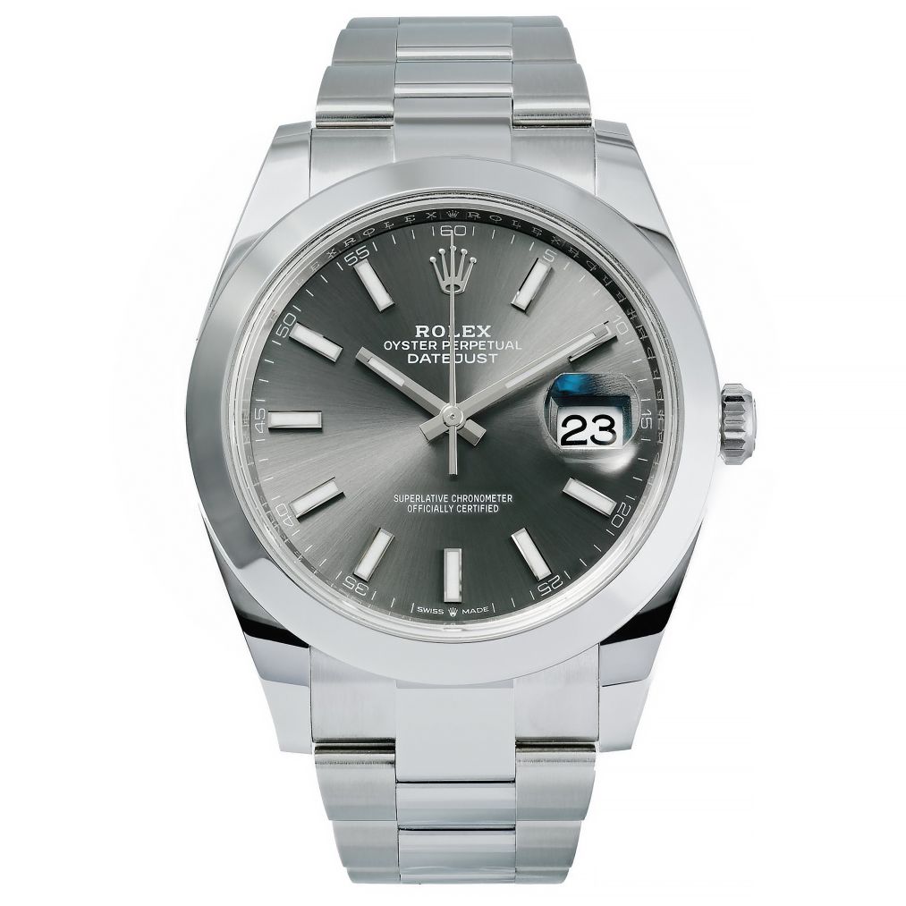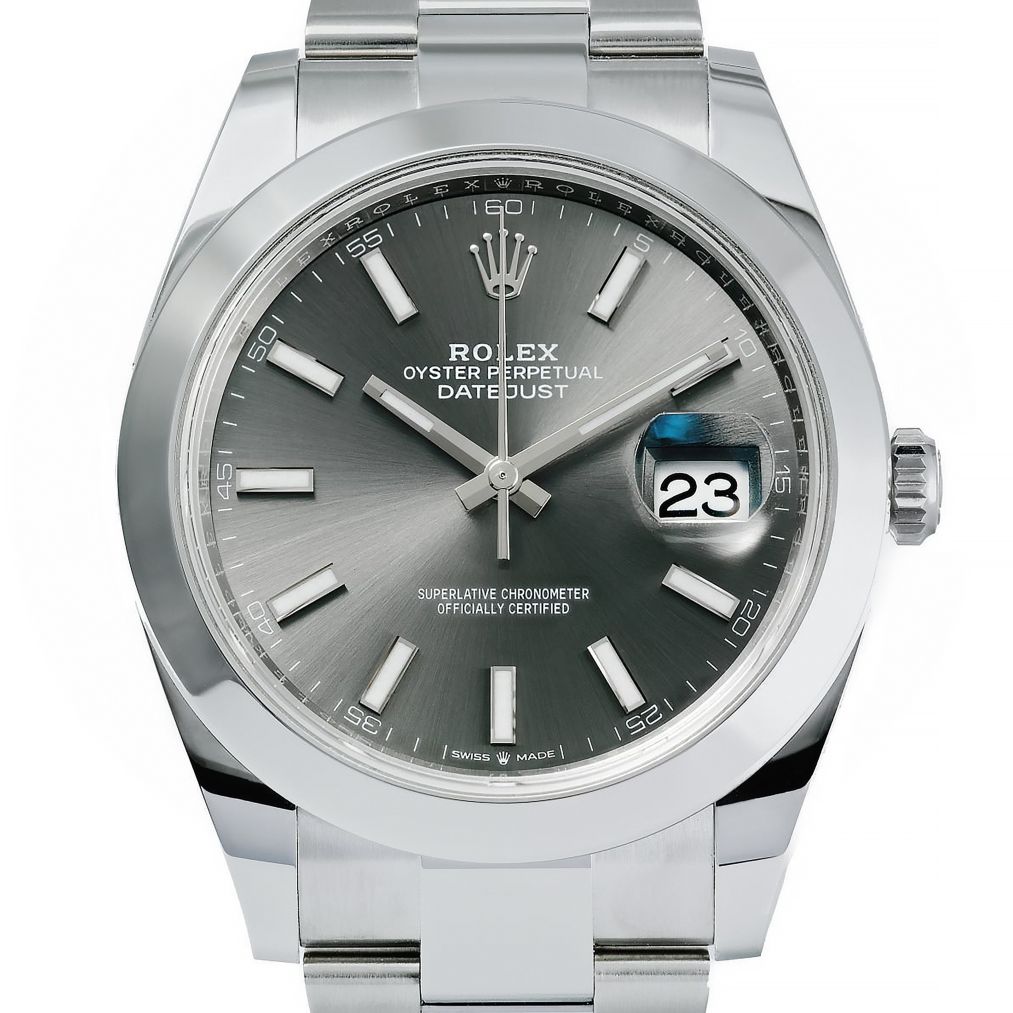 This Rolex Datejust 41 in stainless steel offers a refined and contemporary take on the brand’s iconic dress-sport watch, pairing a sleek 41 mm Oystersteel case with a sophisticated grey dial that exudes understated elegance. The dial’s subtle tone adds depth and versatility, while polished hour markers and hands uphold Rolex’s timeless design language. A date window with Rolex’s signature Cyclops magnifier at 3 o’clock enhances everyday practicality without detracting from the clean dial aesthetic.