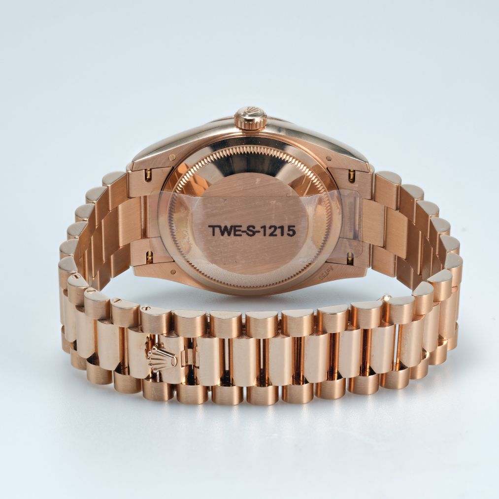 Powered by Rolex’s automatic movement, this Day-Date delivers exceptional precision, reliability, and smooth performance. The solid gold bracelet, scratch-resistant sapphire crystal, and robust construction ensure both comfort and durability. Combining prestigious materials with timeless design, this Everose gold Day-Date 36 is a standout luxury timepiece that perfectly balances sophistication, heritage, and everyday wearability.