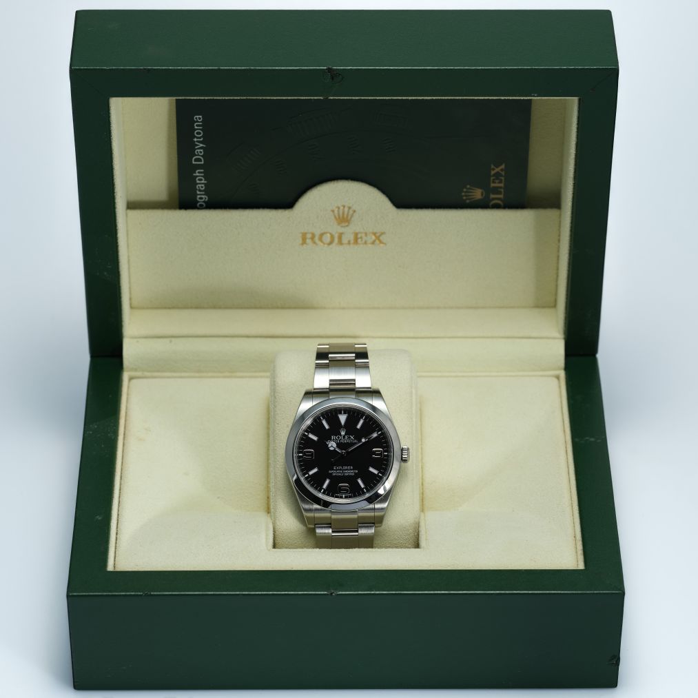 This Rolex Explorer encapsulates the brand’s long-standing legacy of rugged elegance and adventure-ready design. With its stainless-steel Oyster case, and clean black dial, the Explorer offers superb legibility and understated style inspired by decades of exploration heritage. The minimalist dial, luminous markers, and robust build reflect Rolex’s original vision for a reliable, easy-to-read tool watch — ready for anything from outdoor excursions to urban wear.