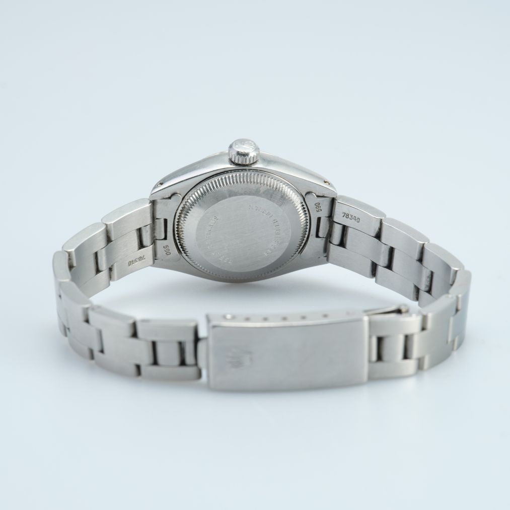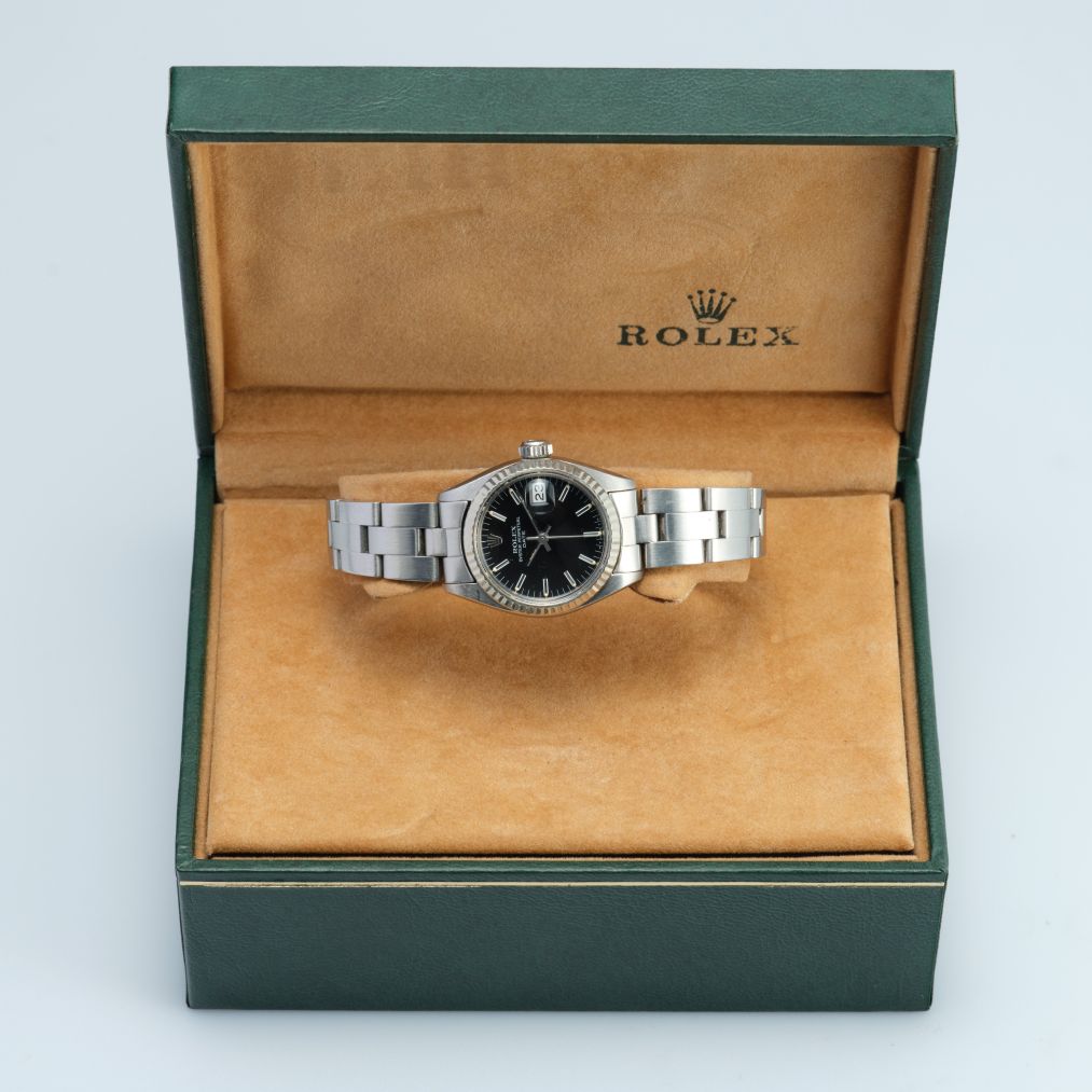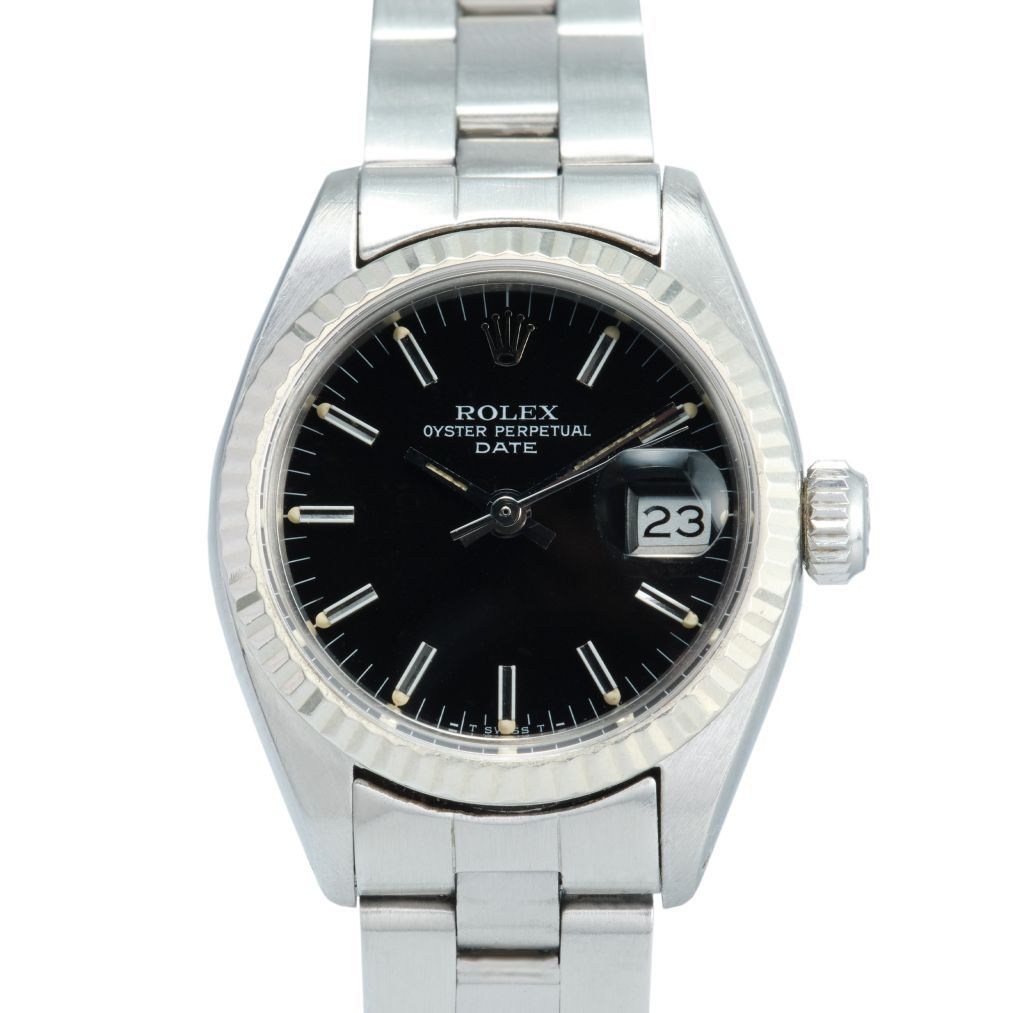 Timeless and elegantly understated, the Rolex Oyster Perpetual Date 26 is a perfect expression of classic Rolex craftsmanship. Crafted in durable stainless steel, this refined timepiece features a sleek black dial that delivers crisp legibility and versatile style for any occasion. The signature fluted bezel adds a touch of traditional Rolex sophistication, catching the light beautifully and elevating the watch’s overall presence. Its compact 26 mm case ensures a graceful fit on the wrist, making it an ideal choice for those who appreciate subtle luxury with enduring appeal.