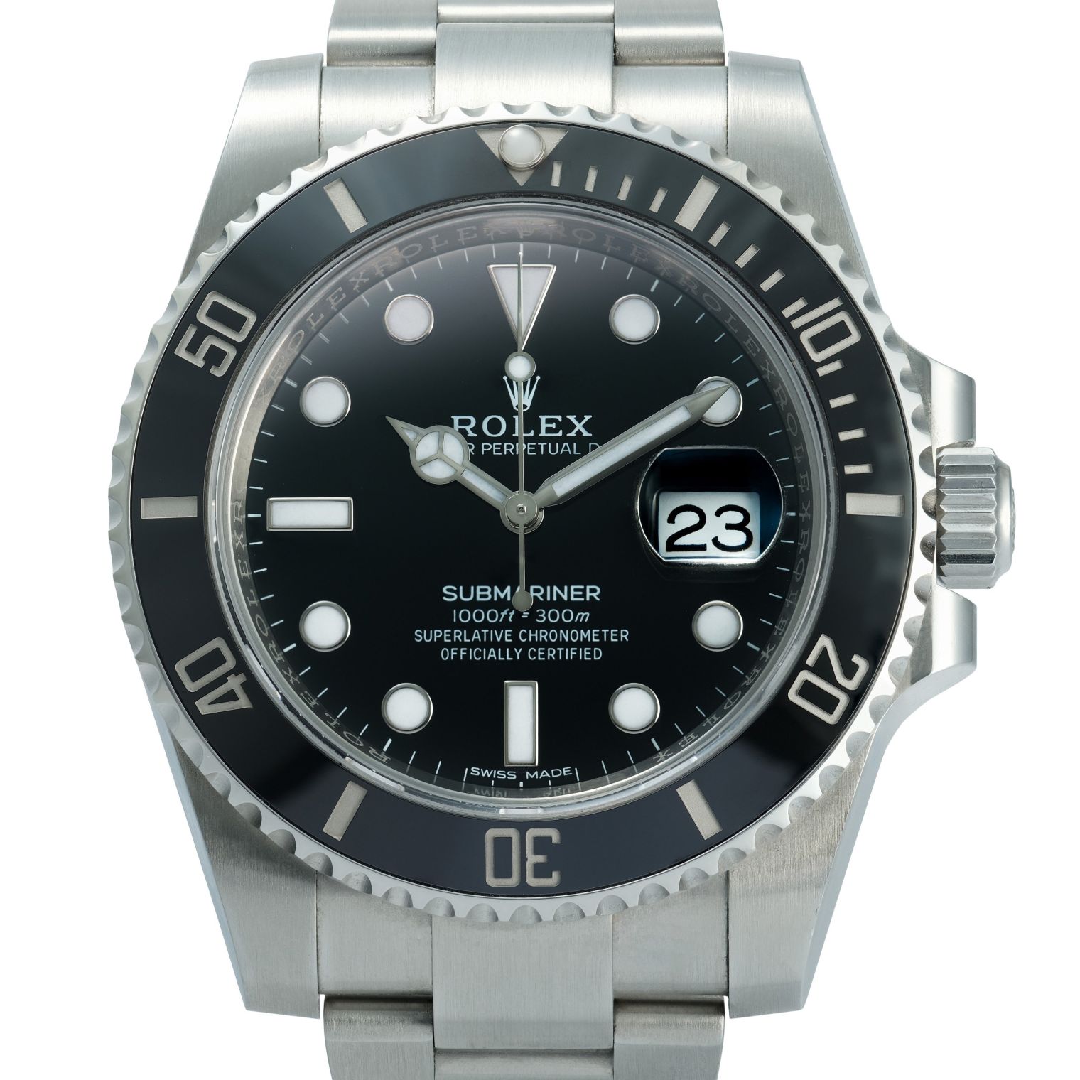 This Rolex Submariner Date in stainless steel is a true icon of professional dive watch design, featuring a bold black dial that offers outstanding clarity and contrast. The 40 mm Oyster case delivers a perfectly balanced presence on the wrist, while the unidirectional bezel enhances both functionality and the watch’s unmistakable tool-watch aesthetic. The date display at 3 o’clock, complete with Rolex’s signature Cyclops lens, adds everyday practicality to this timeless design.