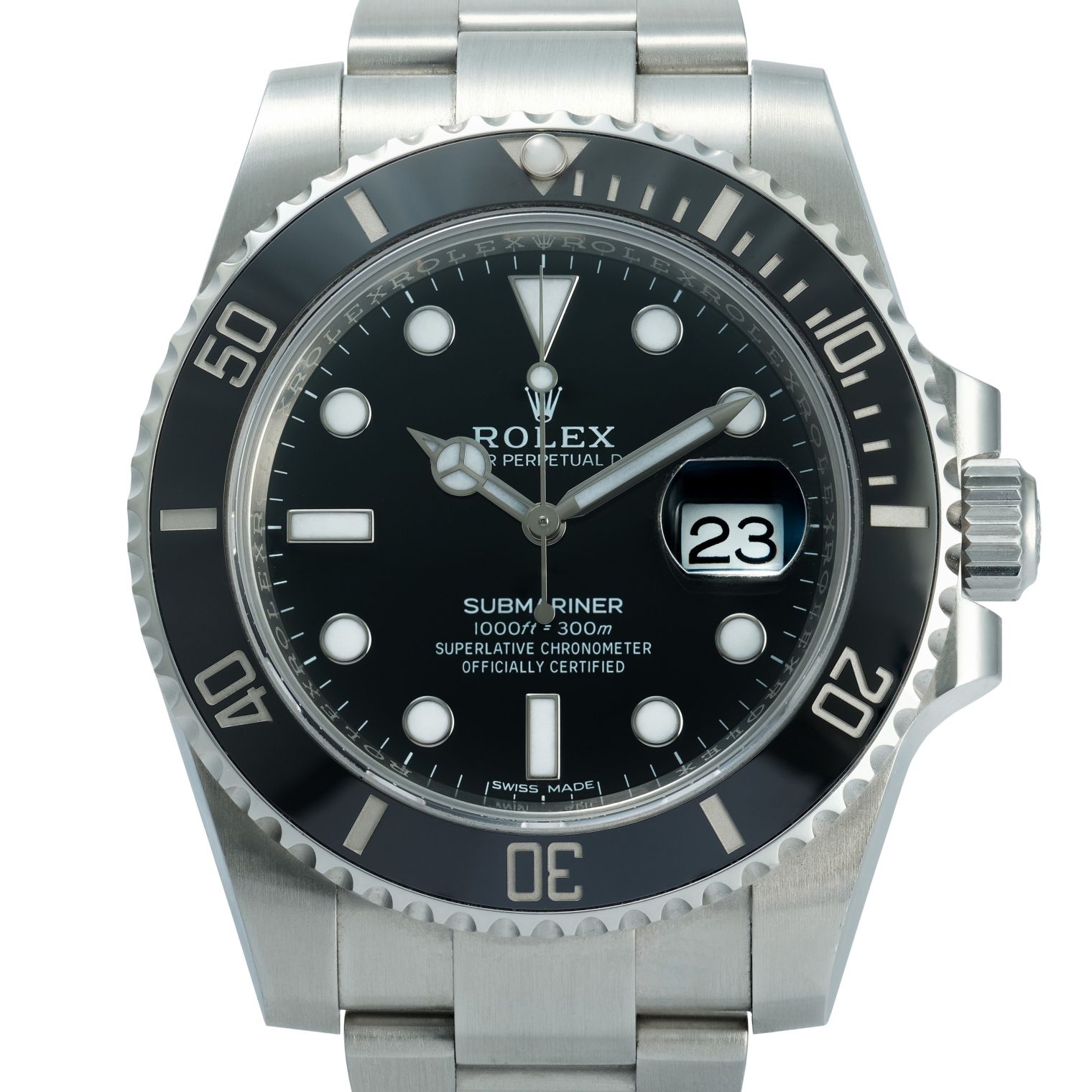 This Rolex Submariner Date 40 in stainless steel embodies the enduring blend of rugged capability and refined style that has defined the collection for decades. Its bold black dial offers exceptional contrast and legibility, framed by the iconic unidirectional bezel that enhances its professional dive-watch persona. The 40 mm Oystersteel case delivers a balanced and versatile wrist presence, while the date window at 3 o’clock — complete with Rolex’s signature Cyclops magnifier — provides practical everyday functionality without detracting from the watch’s clean, sporty aesthetic.