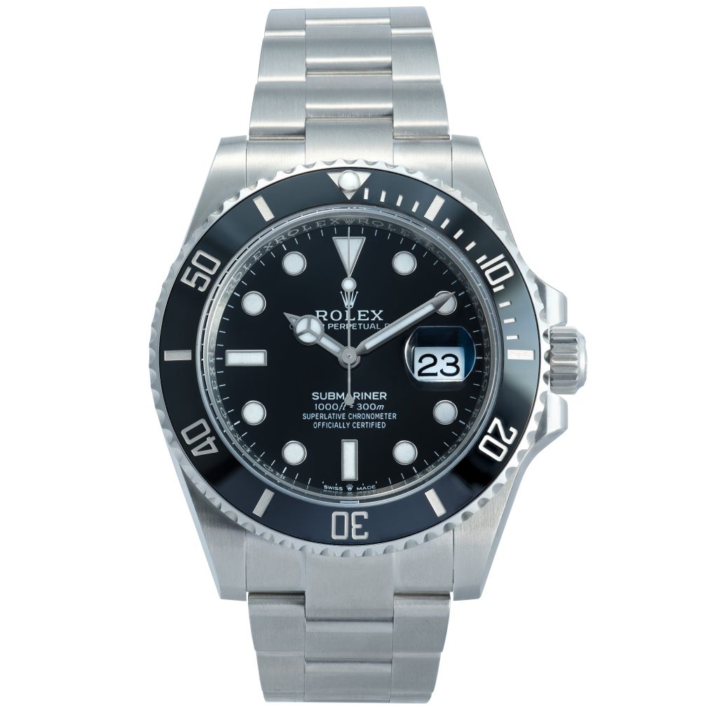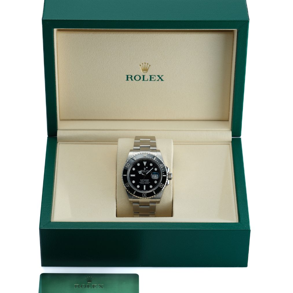 The watch includes a stainless-steel Oyster bracelet, sapphire crystal, and classic Submariner design elements such as luminous markers and a unidirectional bezel. With its contemporary proportions and reliable movement, this model represents one of Rolex’s most sought-after modern sports watches, valued for its durability, precision, and timeless aesthetic.