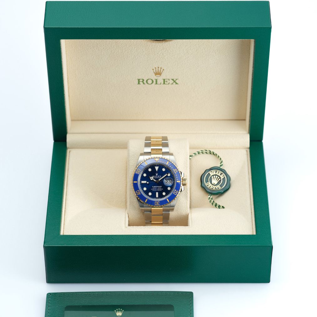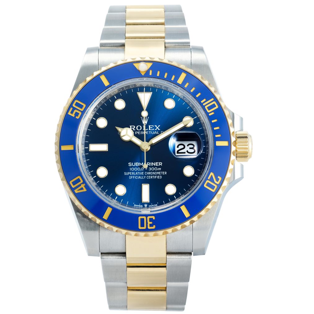 Beneath its stylish surface, the watch houses Rolex’s reliable automatic movement, engineered for precision and durability. The Oyster bracelet and secure clasp underline everyday wearability, while the watch’s dual metal construction makes it versatile enough to move seamlessly from diving gear to formal attire. For those wanting a Submariner that balances sportiness, luxury, and timeless design, this two-tone blue-dial Date exemplifies that harmony beautifully.